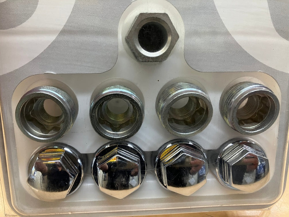 独自の花柄キーパターンを持つホイールロックは、通常のナット/ボルトと