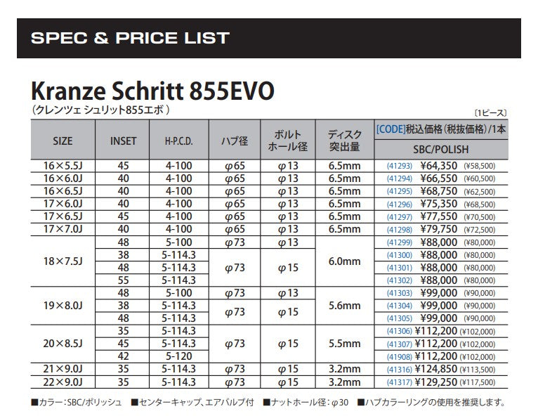 メーカーページ:https://www.weds.co.jp/kranze/schritt855evo/